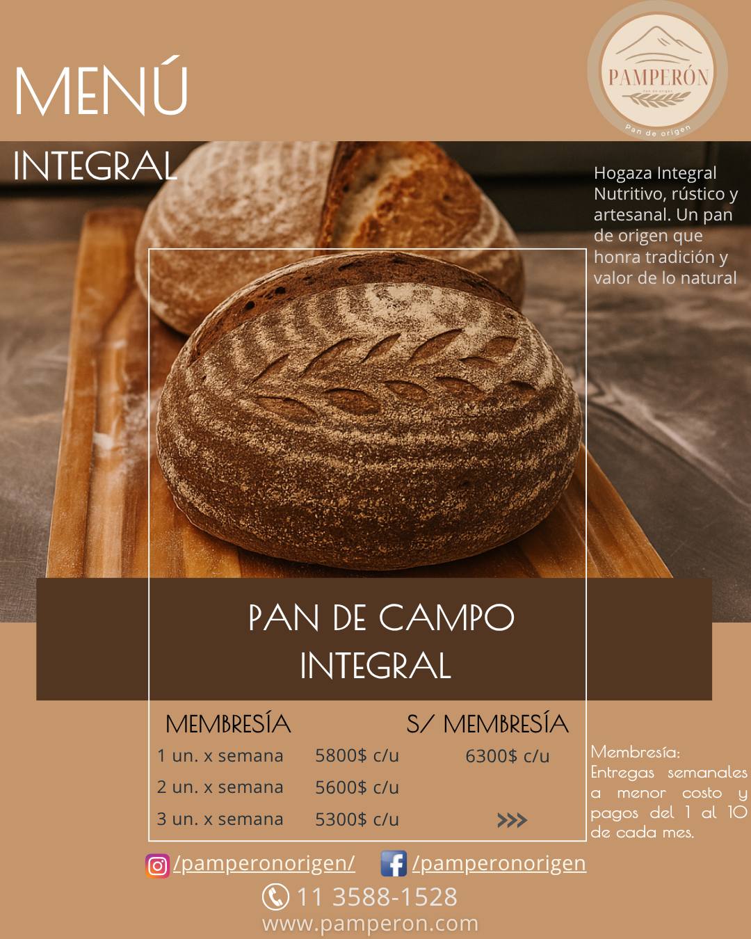 Hogaza integral con semillas Pamperón: rústica, nutritiva y llena de energía. El equilibrio perfecto entre tradición y bienestar.